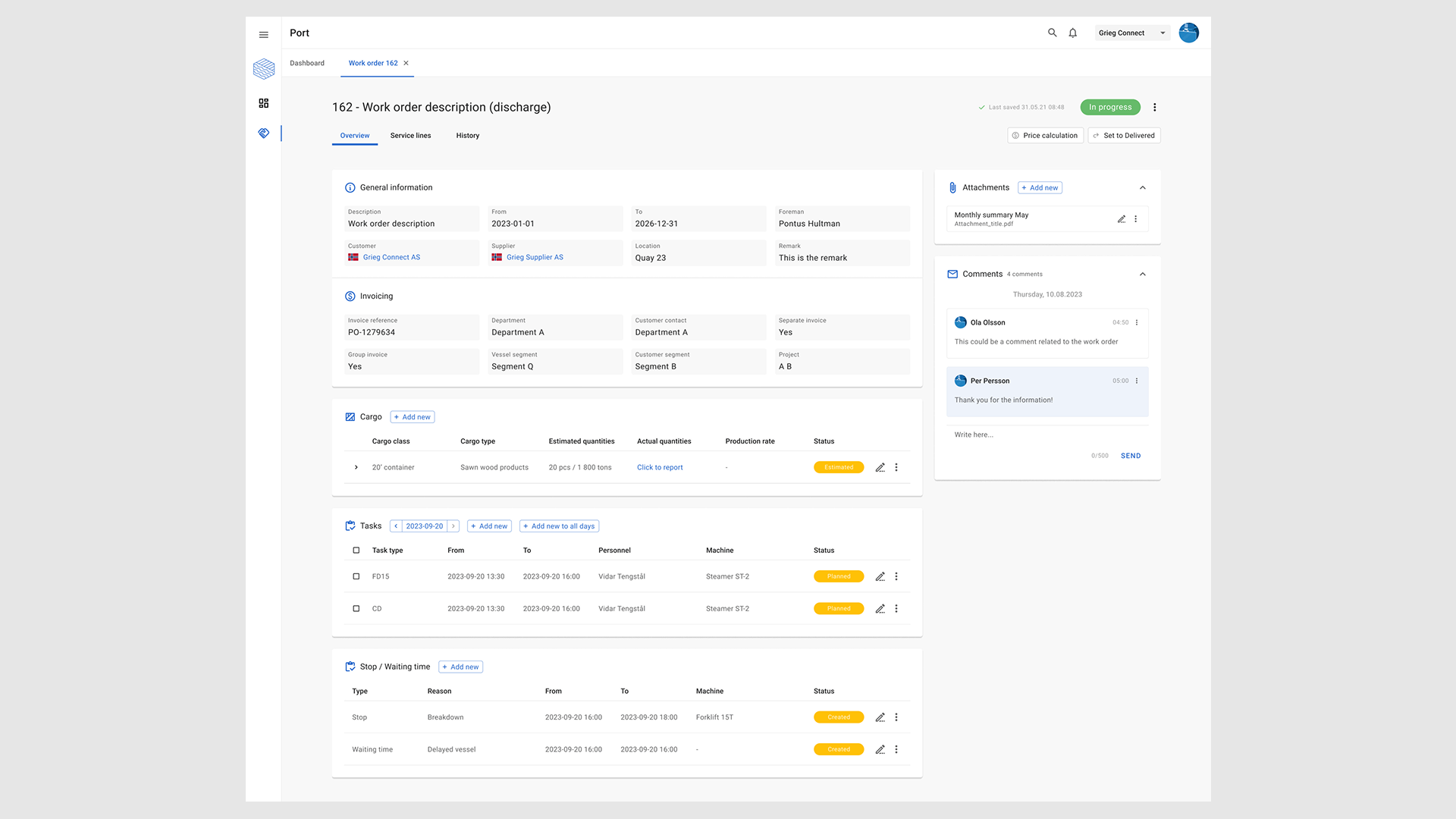 Øyeblikkelig fakturering til dine kunder! Nøkkelinformasjon vil være tilgjengelig, og faktura utløses ved fartøyets avgang eller trigges i communityportalen. Den smarte prismotoren vil gjøre automatiske prisberegninger for deg.