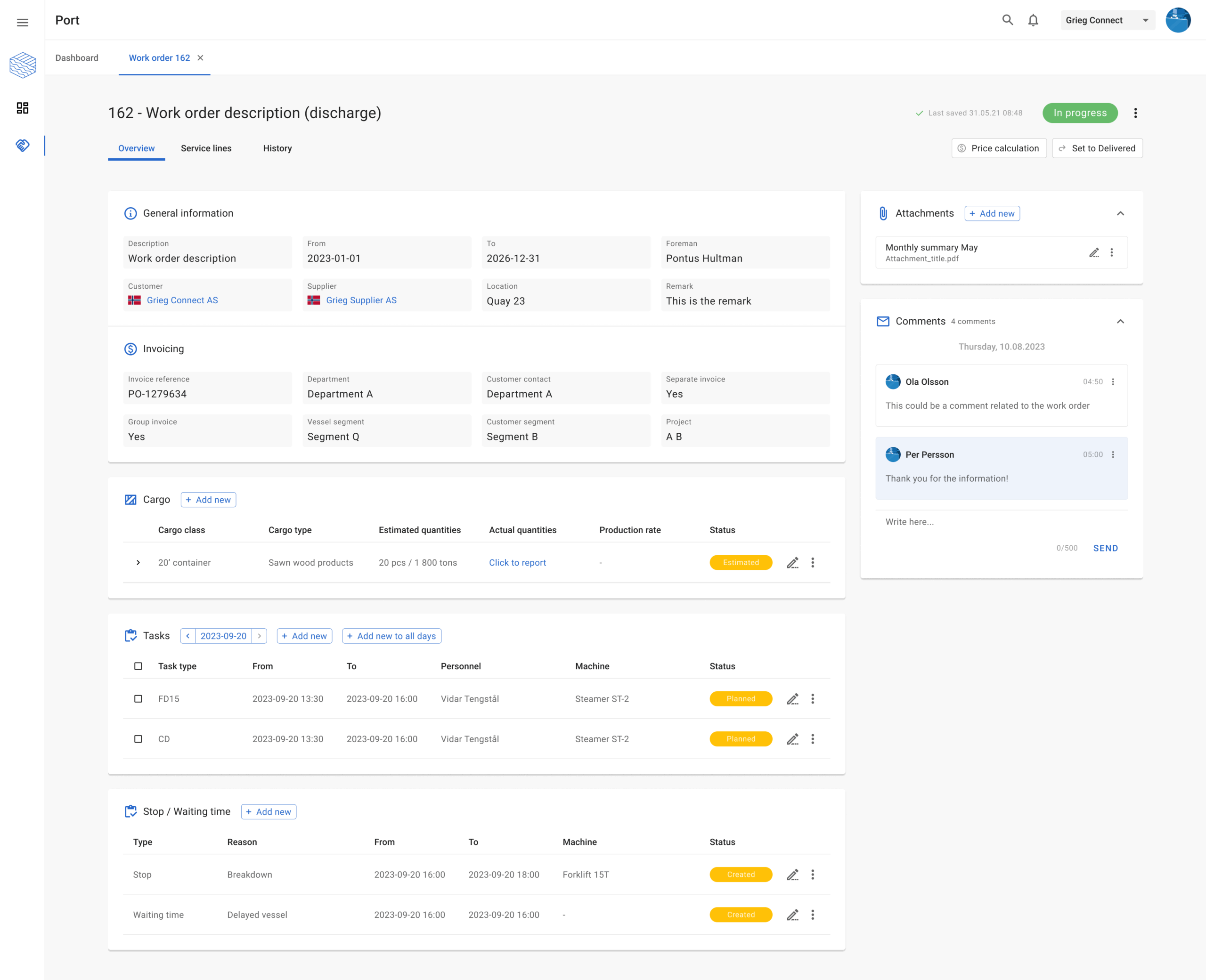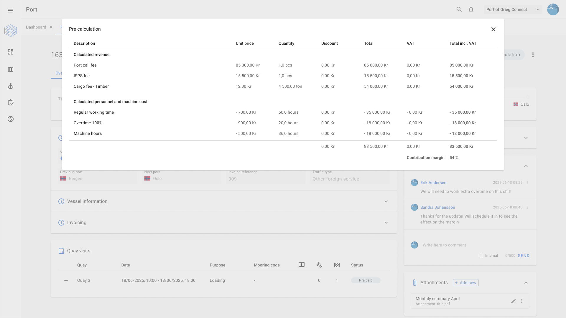 In daily operations, these decisions are often made under time pressure. A foreman standing on the quay must be able to decide whether it’s profitable to add an extra shift or wait until the next day. With the right decision support on a mobile device, you get instant insight into how the decision affects the contribution margin — and can act without risking profitability.