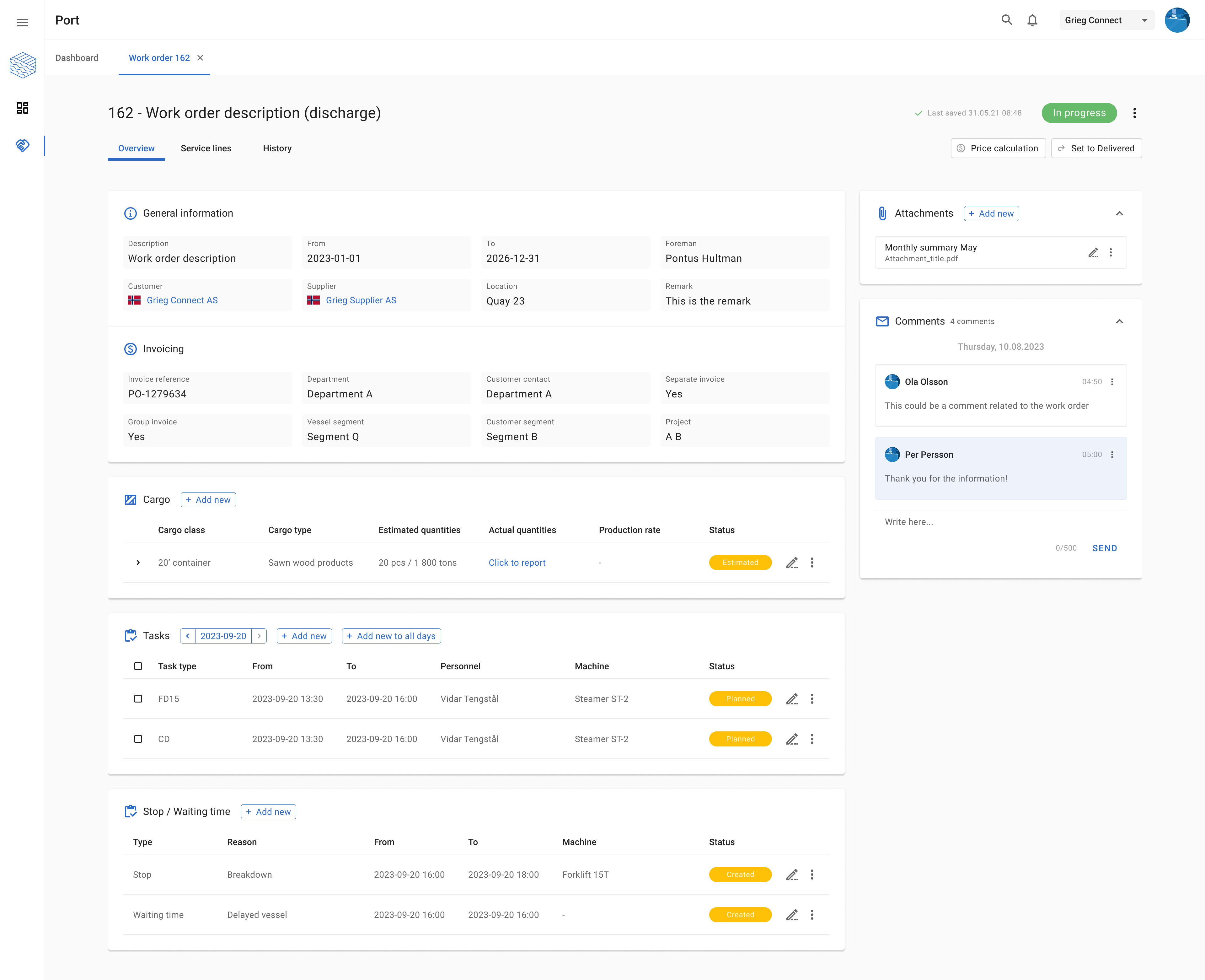 In daily operations, these decisions are often made under time pressure. A foreman standing on the quay must be able to decide whether it’s profitable to add an extra shift or wait until the next day. With the right decision support on a mobile device, you get instant insight into how the decision affects the contribution margin — and can act without risking profitability.
